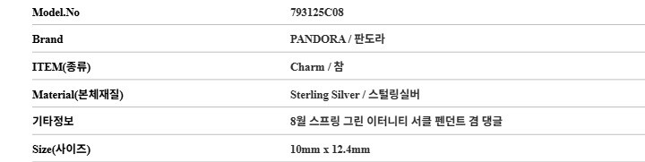 [명품] 판도라 793125C08 스프링 그린 이터니티 서클 펜던트 겸 댕글 실버 참