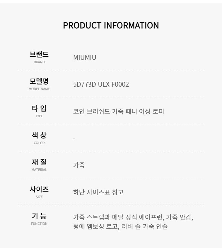 [명품] 미우미우 5D773D ULX F0002 코인 브러시드 가죽 페니 로퍼