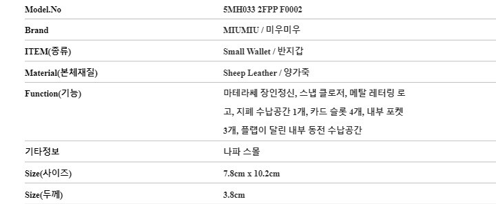 | 1. 종류 | 반지갑 |