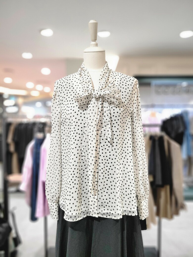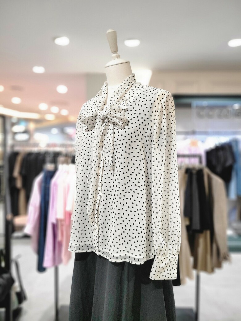 씨씨콜렉트 리본타이 도트 블라우스 E251MSC105