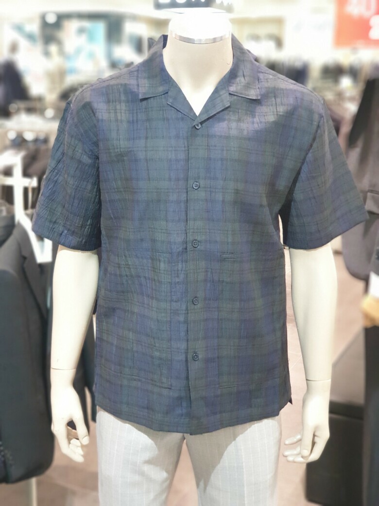 BON 25SS 그린 크리즈 직수입 체크 세미오버핏 반팔 남방셔츠BNEMBA689GR