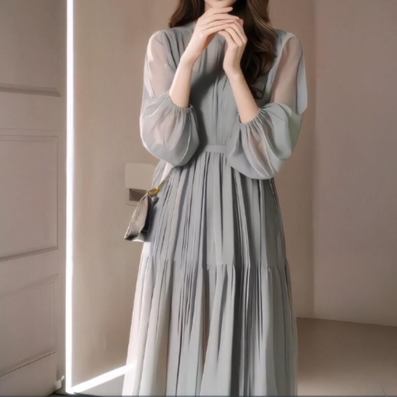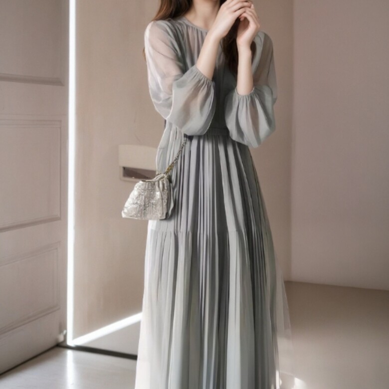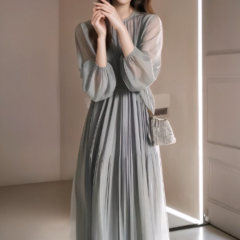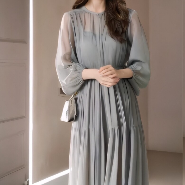 테렐스 라운드넥 슬리브 롱 원피스_250502_HN310