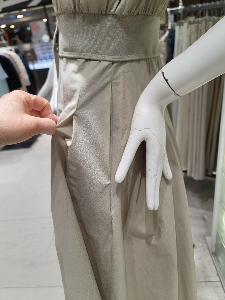 허리밴딩이 라인을 딱 잡아주어 여성스러운 실루엣을 연출해줍니다~!