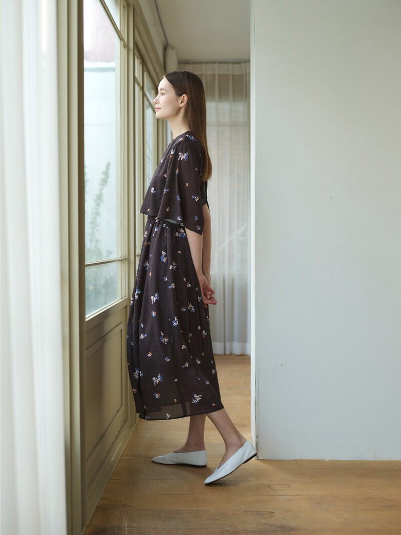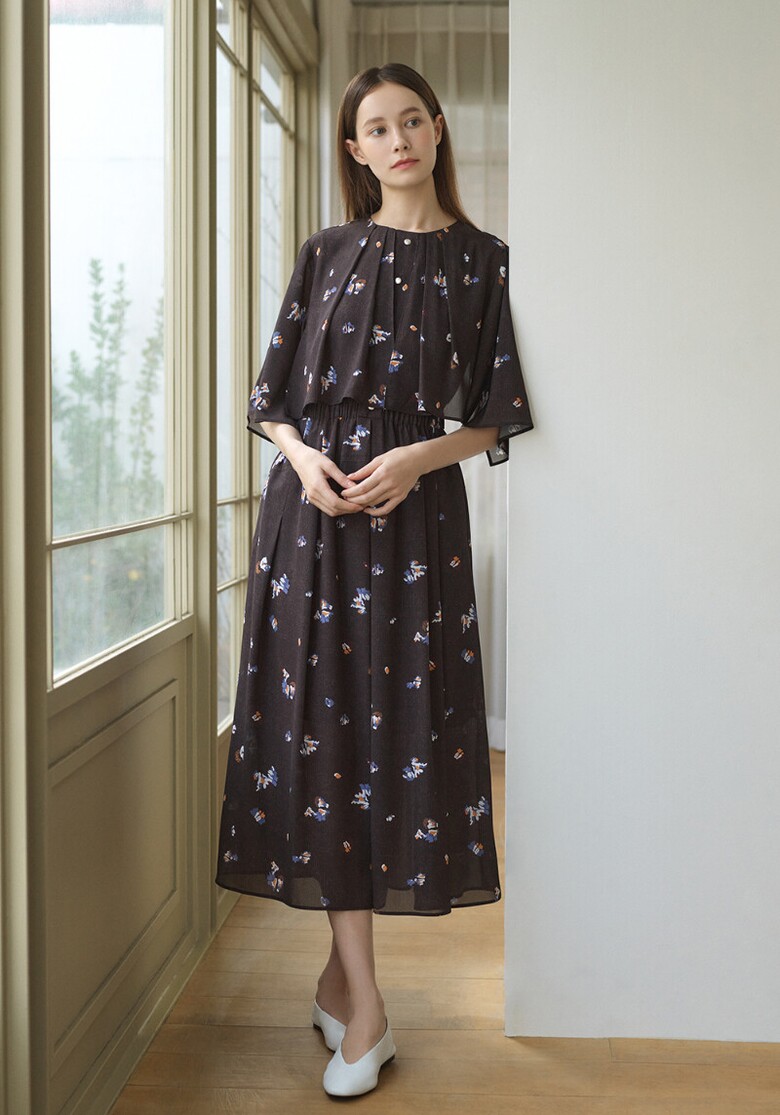 패턴 쉬폰 반소매 롱 원피스 254MO13