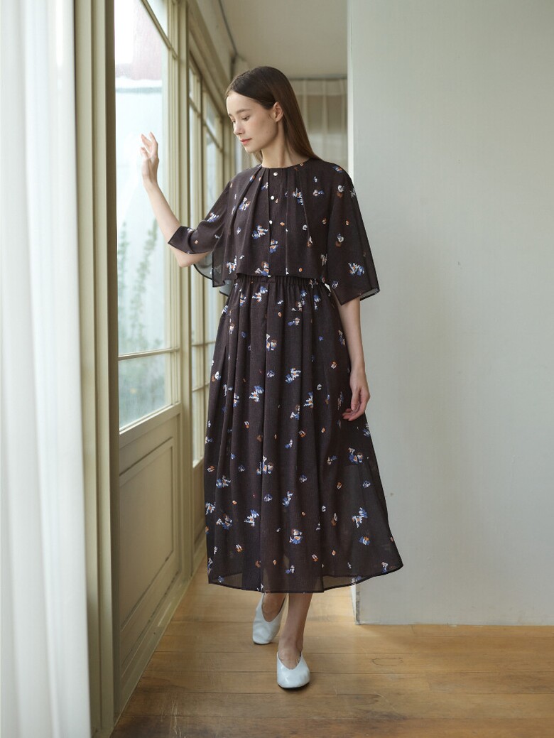 [발렌시아]패턴 쉬폰 반소매 롱 원피스 254MO13