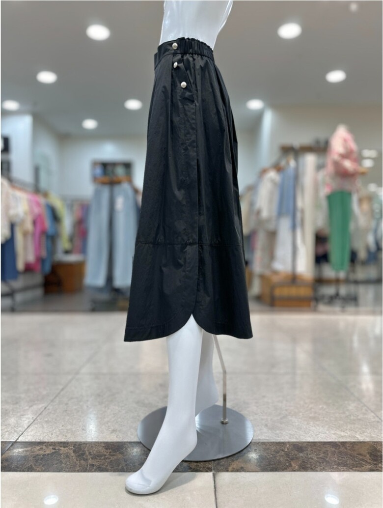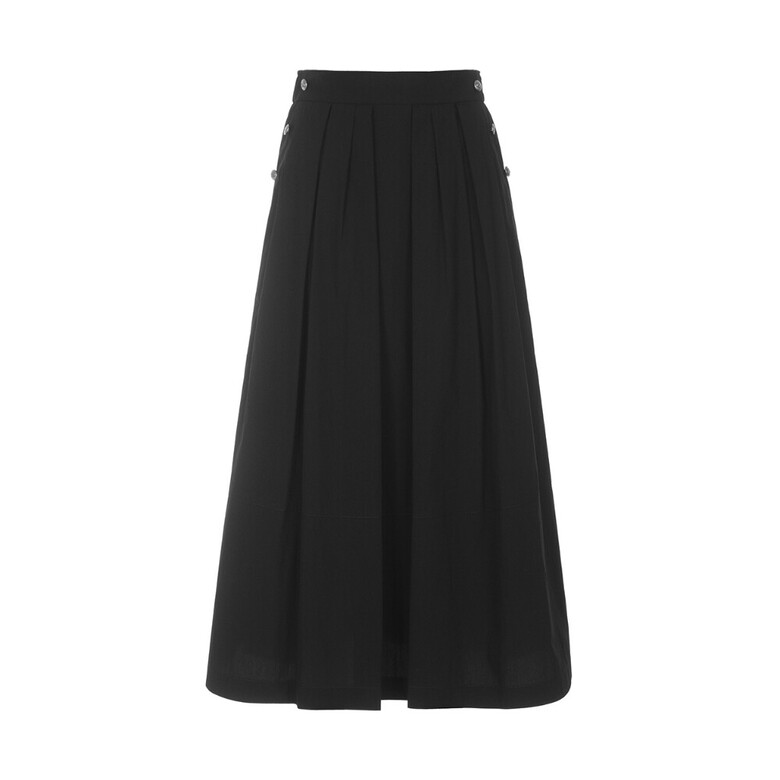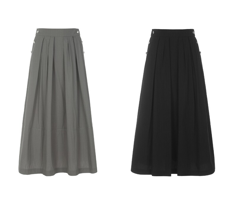옆 사이드 버튼 포인트를준 롱기장 플리츠 스커트입니다.