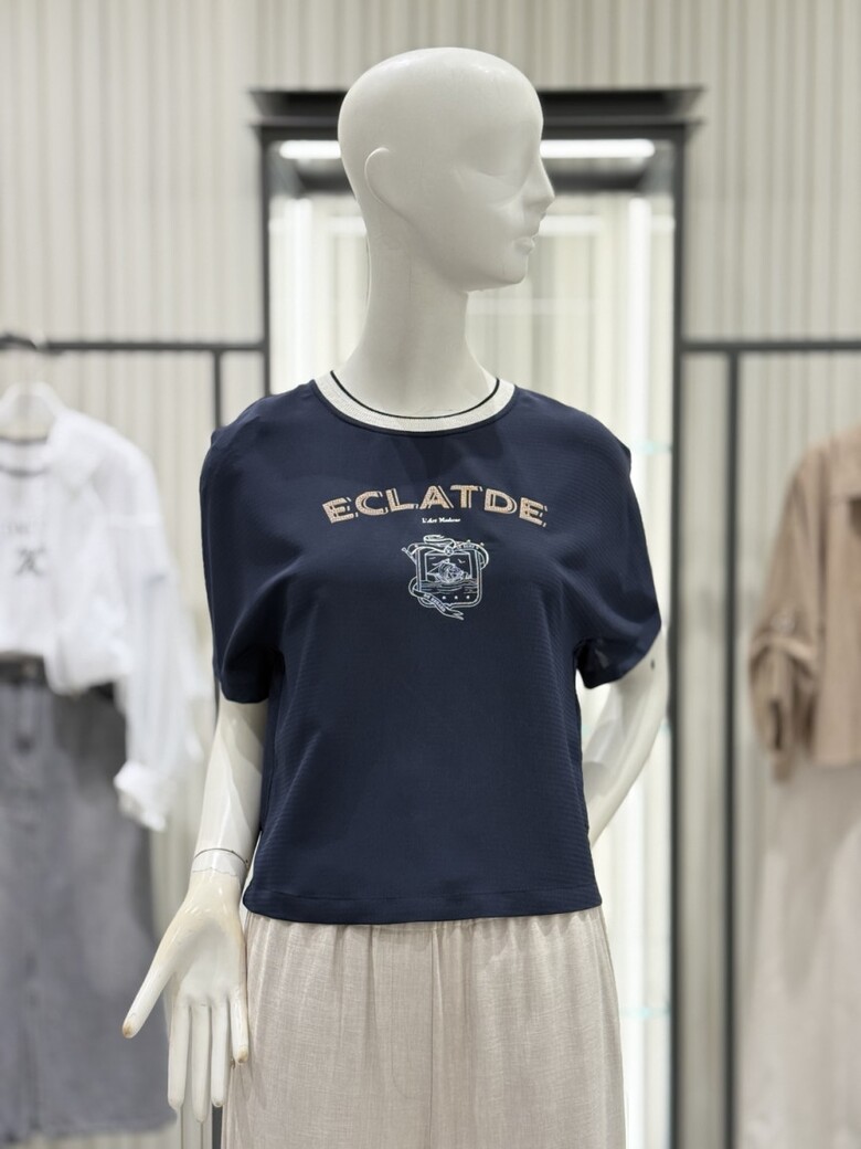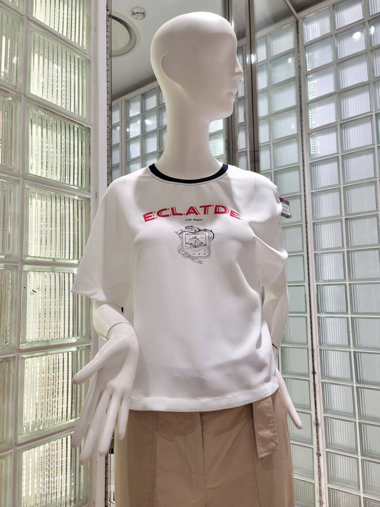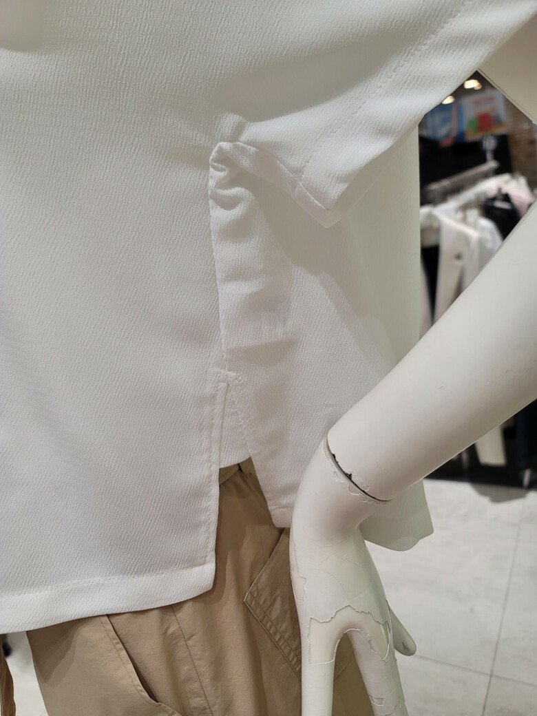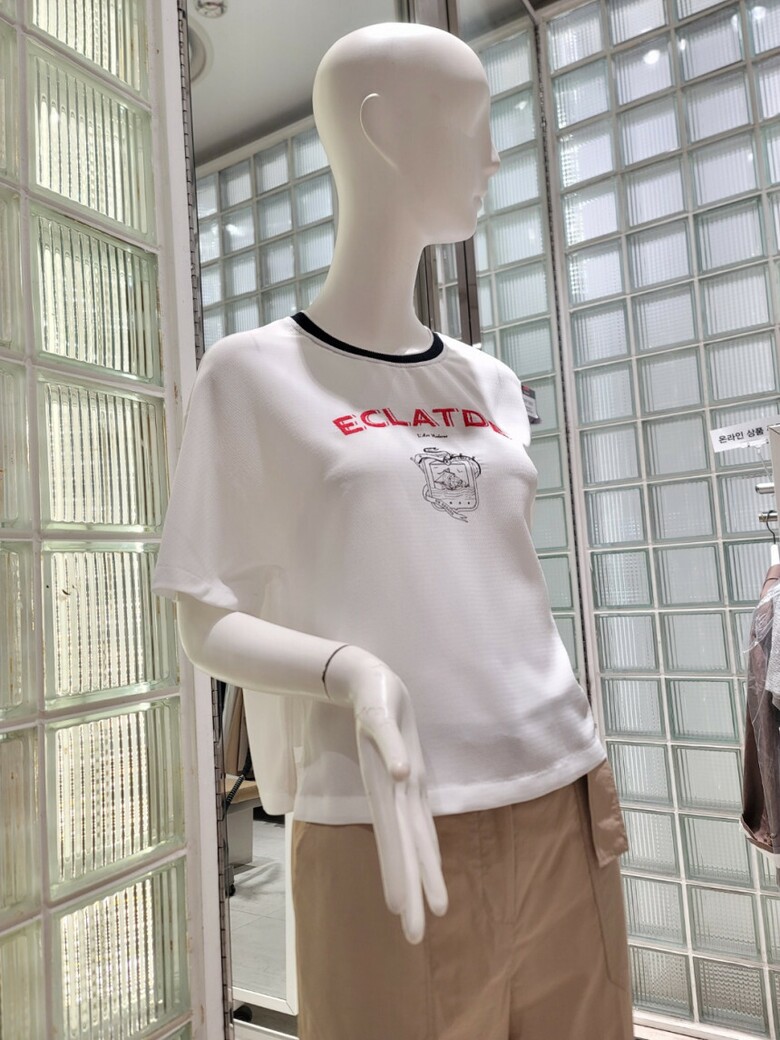 캐주얼한 무드의 티셔츠형 블라우스에요~