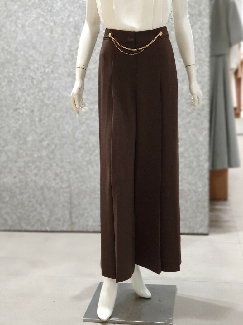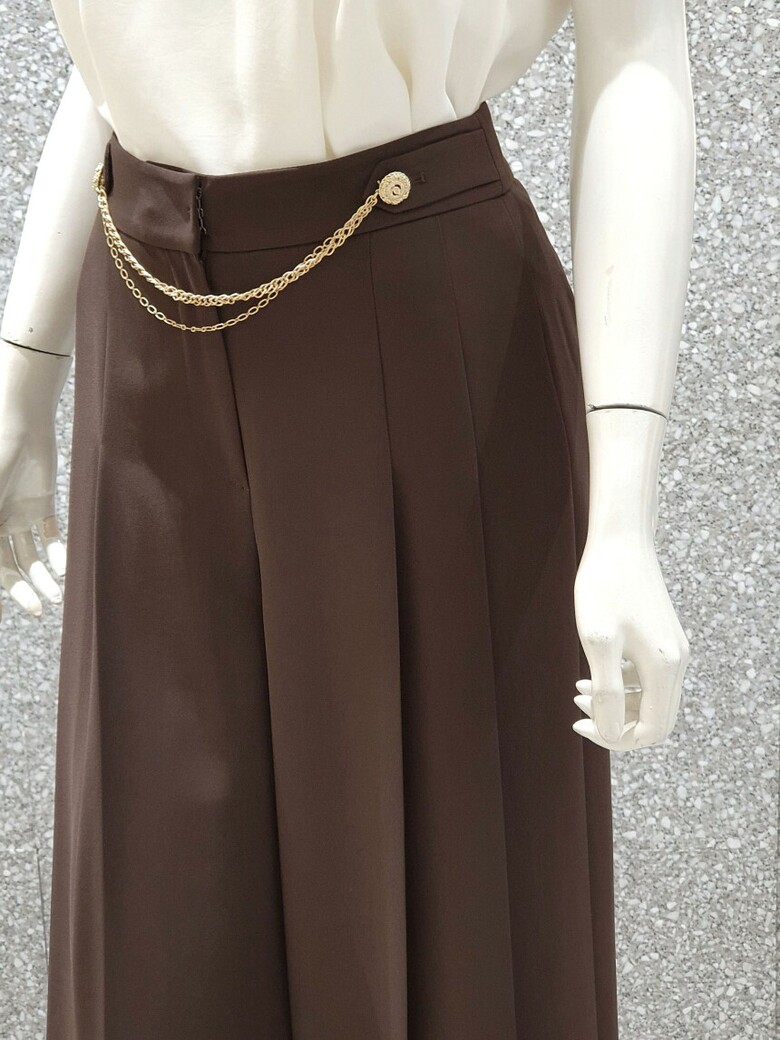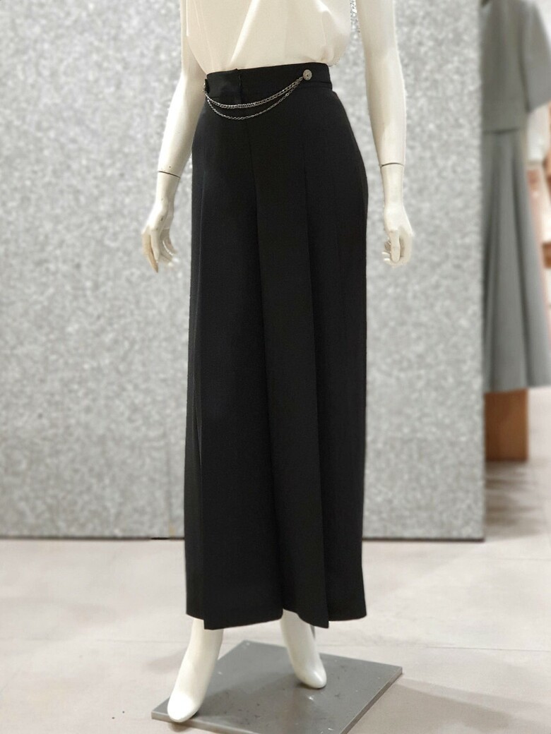 _판매종료체인 장식 더블 핀턱 와이드 팬츠 JR6-A0-SL643