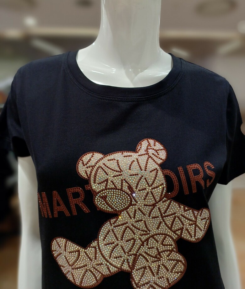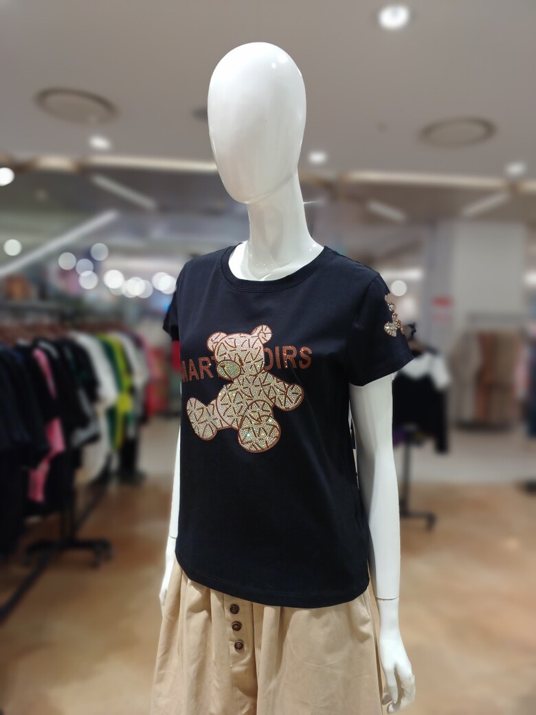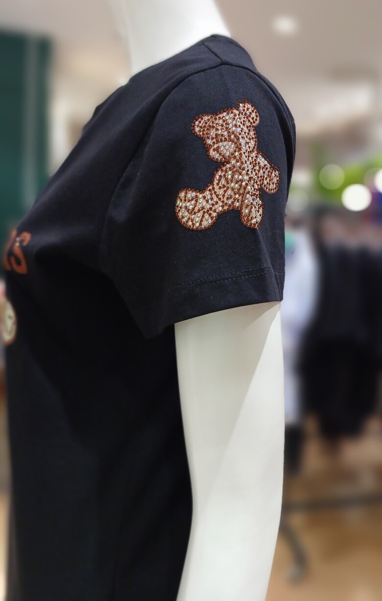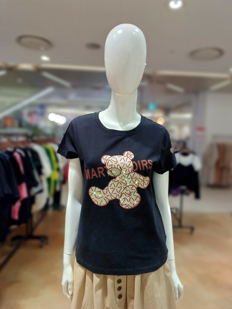 베이직한 디자인의 곰돌이 큐빅이 포인트인 반팔 티셔츠