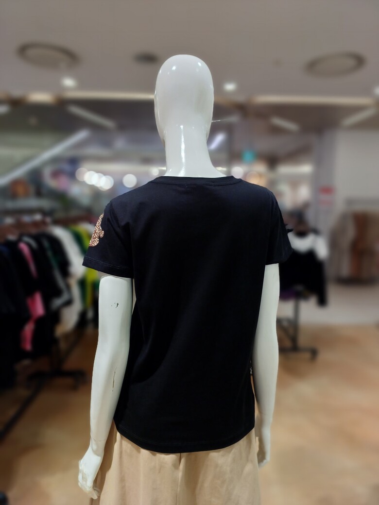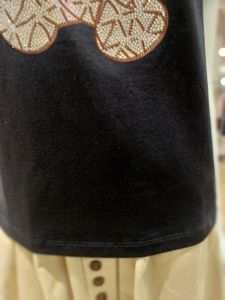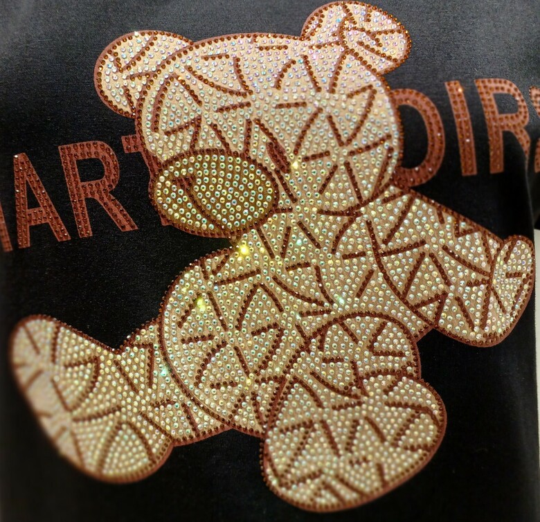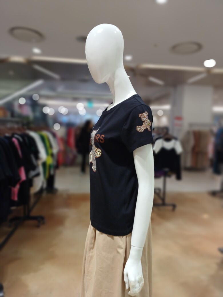 베이직한 디자인의 곰돌이 큐빅이 포인트인 반팔 티셔츠