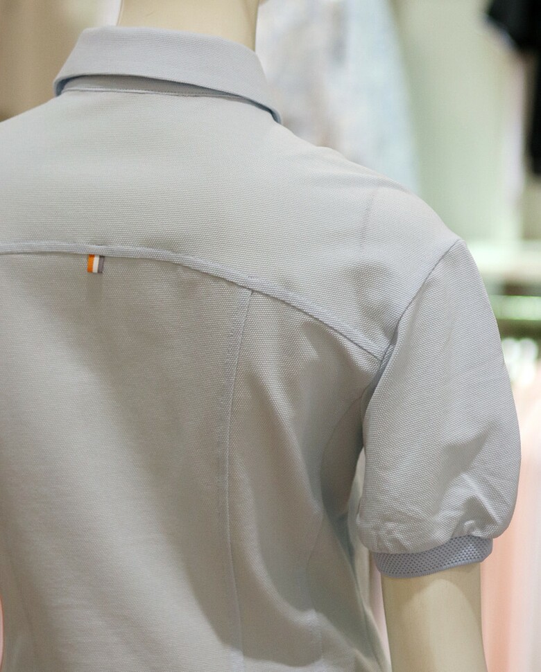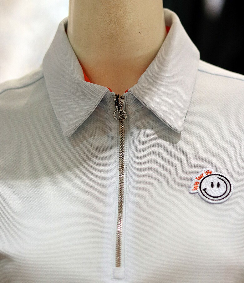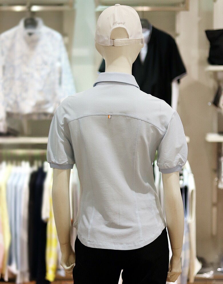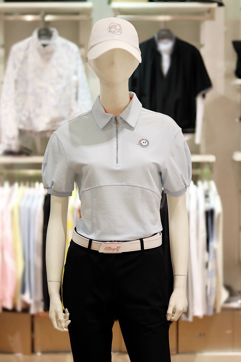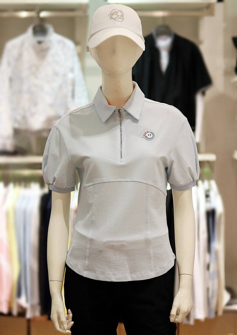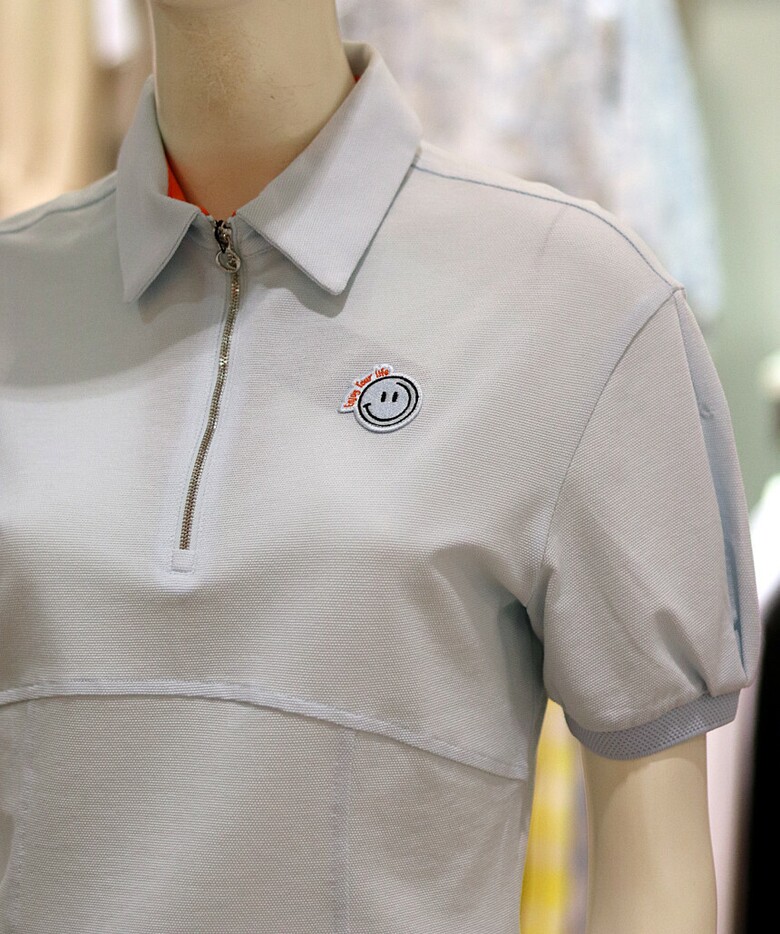에리 퍼프 디자인 지퍼 폴로 티셔츠입니다