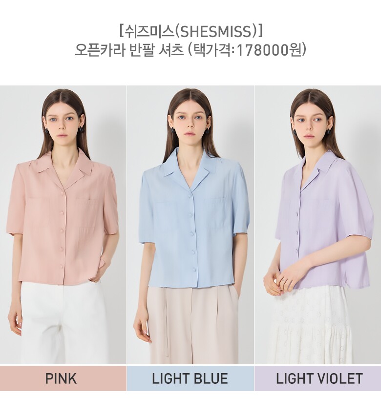 [쉬즈미스(SHESMISS)] 지적인 오픈카라 반팔 셔츠 (택가격: 178000원)
