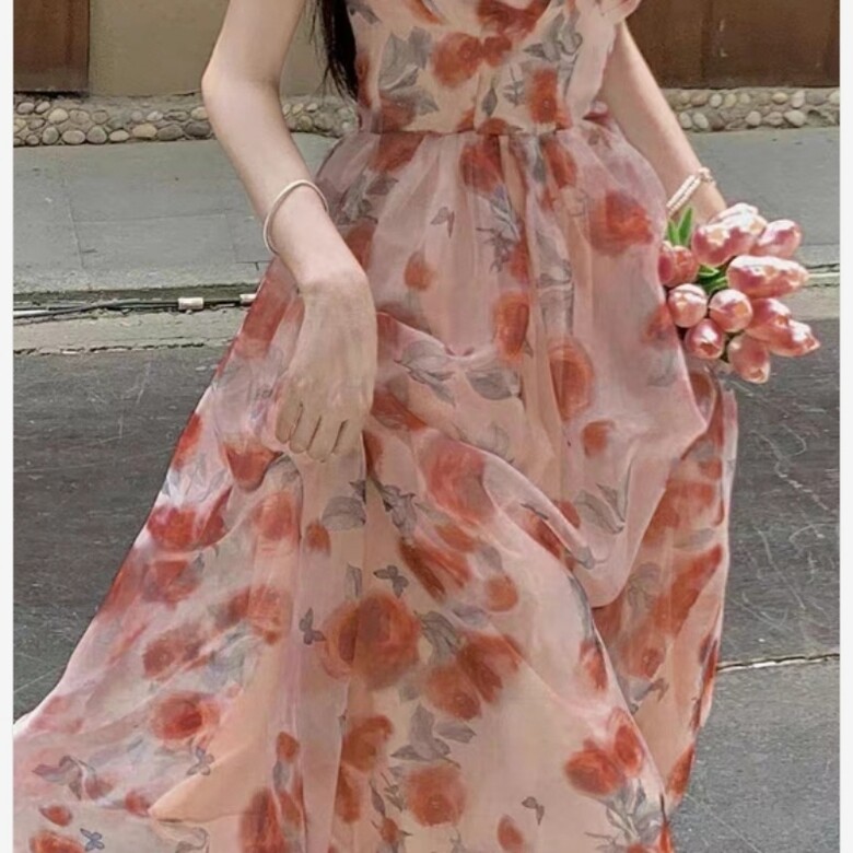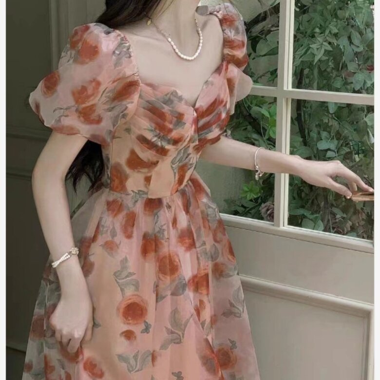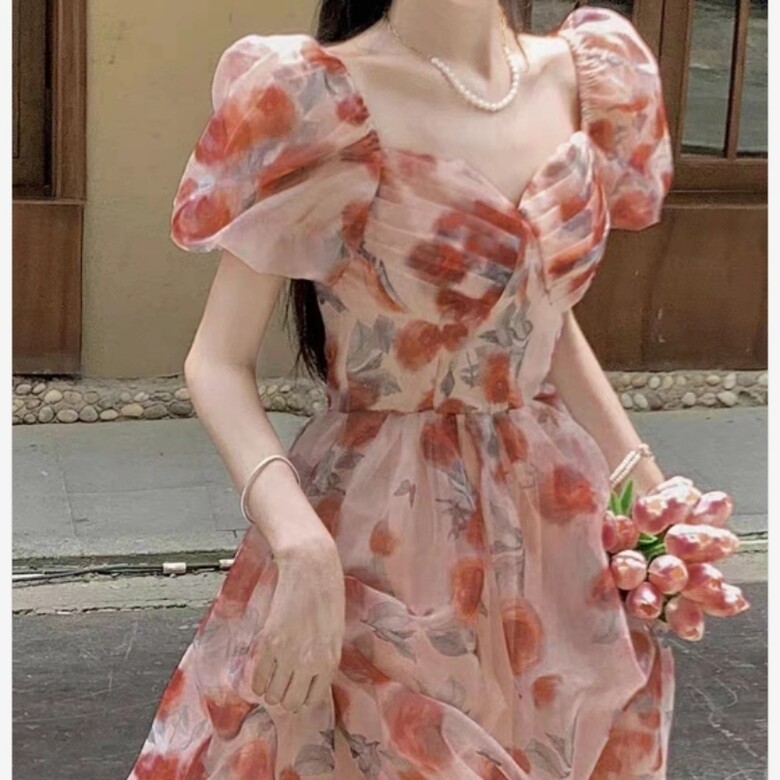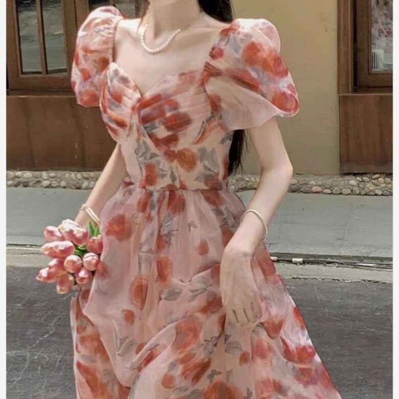 웰프 플로워 퍼프 슬리브 롱 원피스_250502_HN37