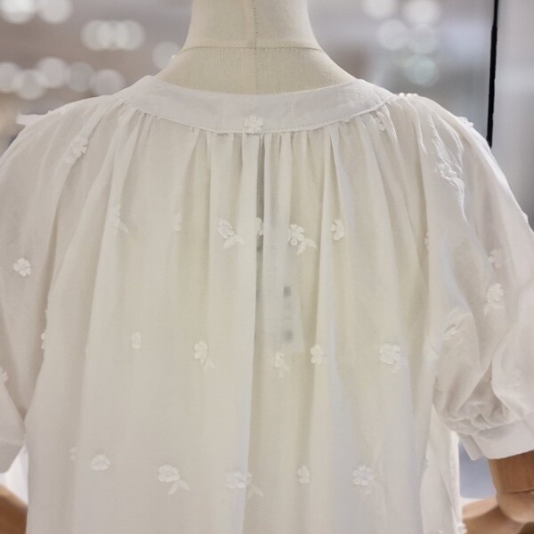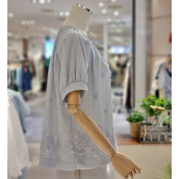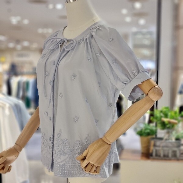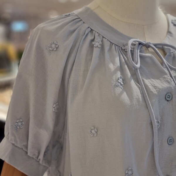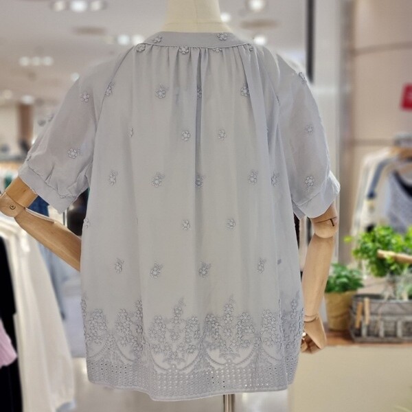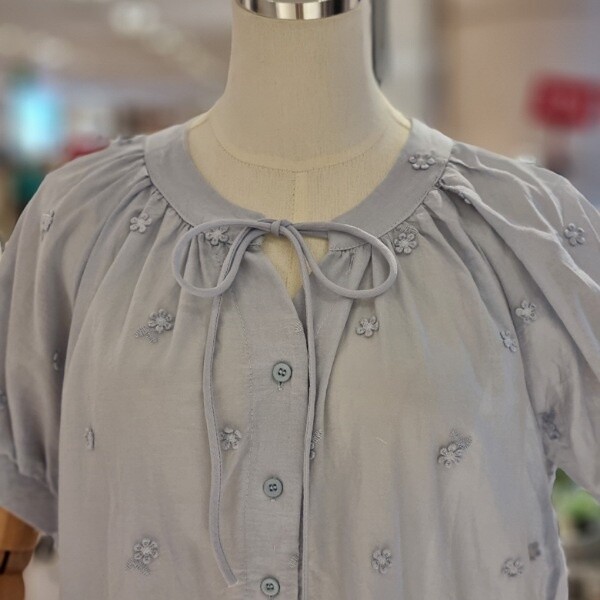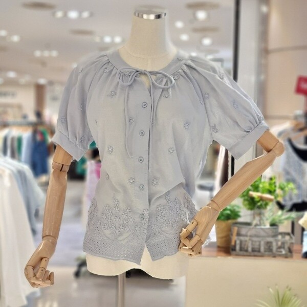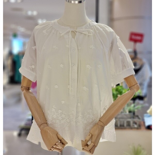 넥선 셔링으로 여유핏사랑스러운 꽃자수페이전트 블라우스 스타일