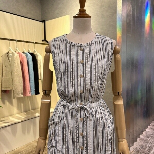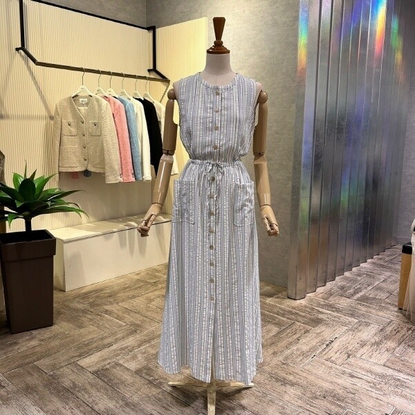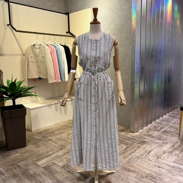 2025년 S/S 신상 지지미 스트랩 단추 민소매 원피스?입니다. 여성스러운 원피스로 포인트 아이템 입니다.