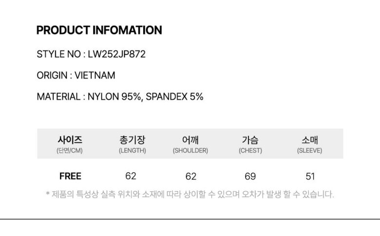 · 겉감 : 나일론95%,폴리우레탄5%