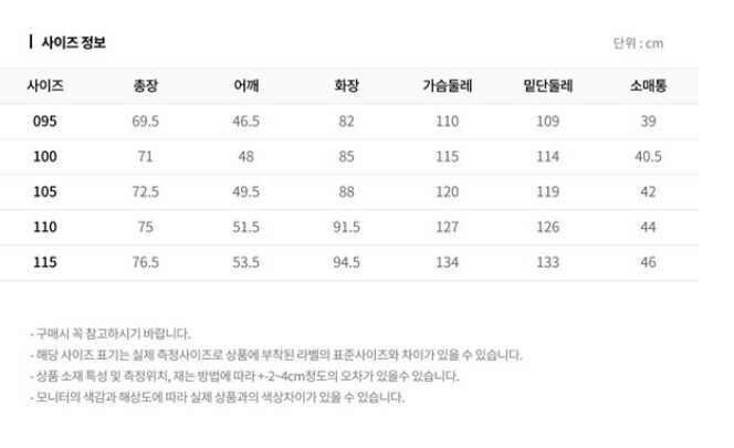 | 1. 제품 소재 (섬유의 조성 또는 혼용률을 백분율로 표시, 기능성인 경우 성적서 또는 허가서) | 상품상세참조 |