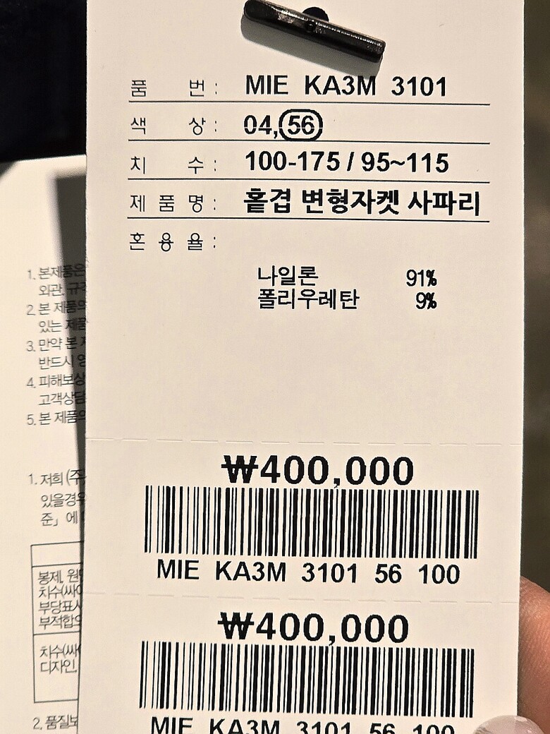 | 6. 세탁방법 및 취급시 주의사항 | 상품상세참조 |