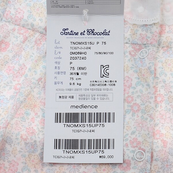 세탁방법 및 취급시 주의사항 : 삶지 마십시오. 기계건조 금지. 주의! 작은 부품이 탈락되면 삼킬 수 있음.
