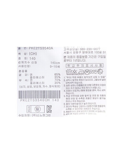 | 1. 제품 소재 (섬유의 조성 또는 혼용률을 백분율로 표시, 기능성인 경우 성적서 또는 허가서) | 상품상세참조 |