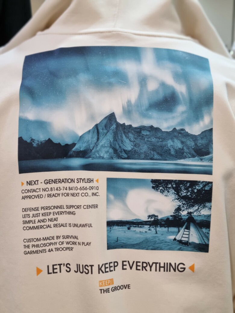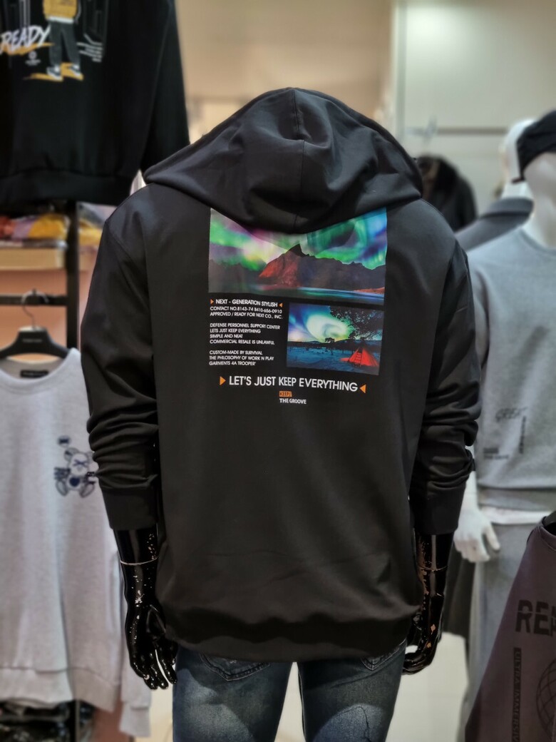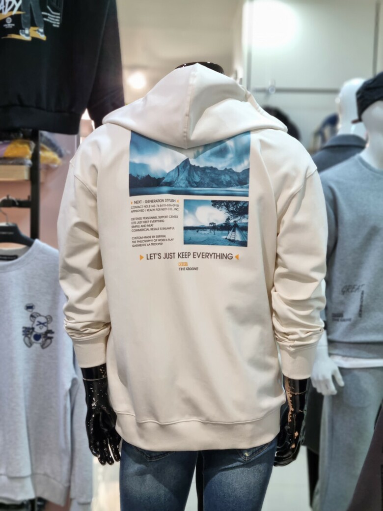 실용적인 캥거루 포켓 / 멋스러운 뒷판 프린팅