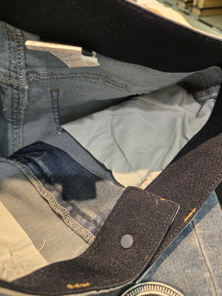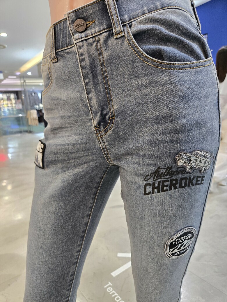 와펜 포인트 스트레이트 데님 팬츠 입니다.