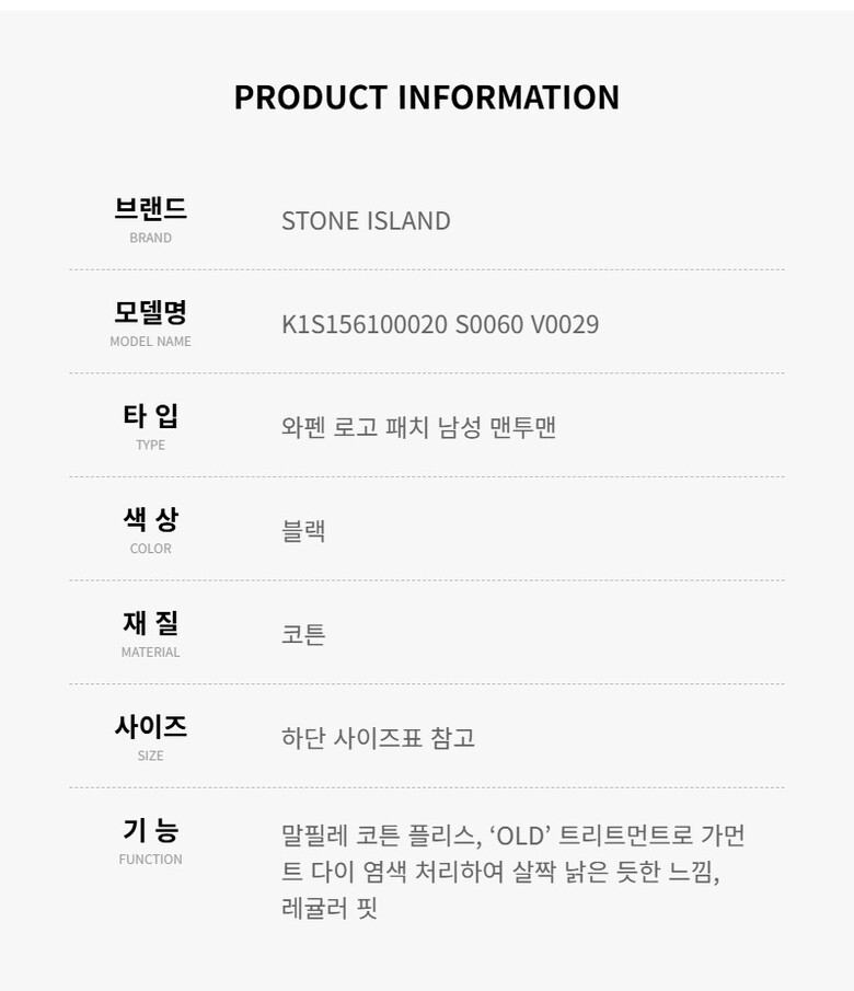 | 4. 제조사 | 스톤아일랜드/(주)언커먼레이블-병행수입 |