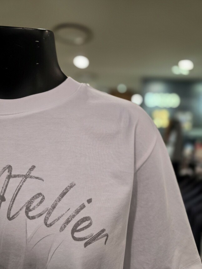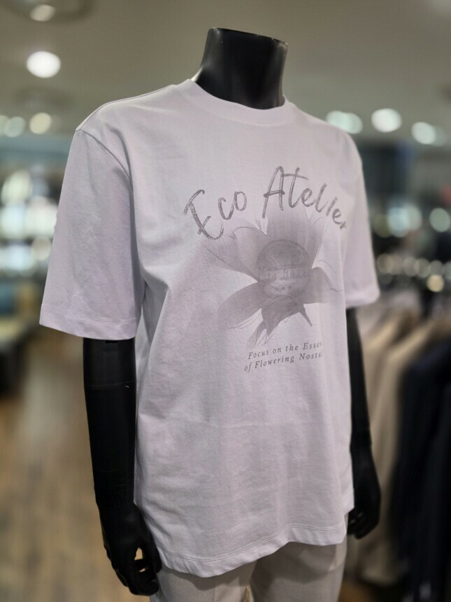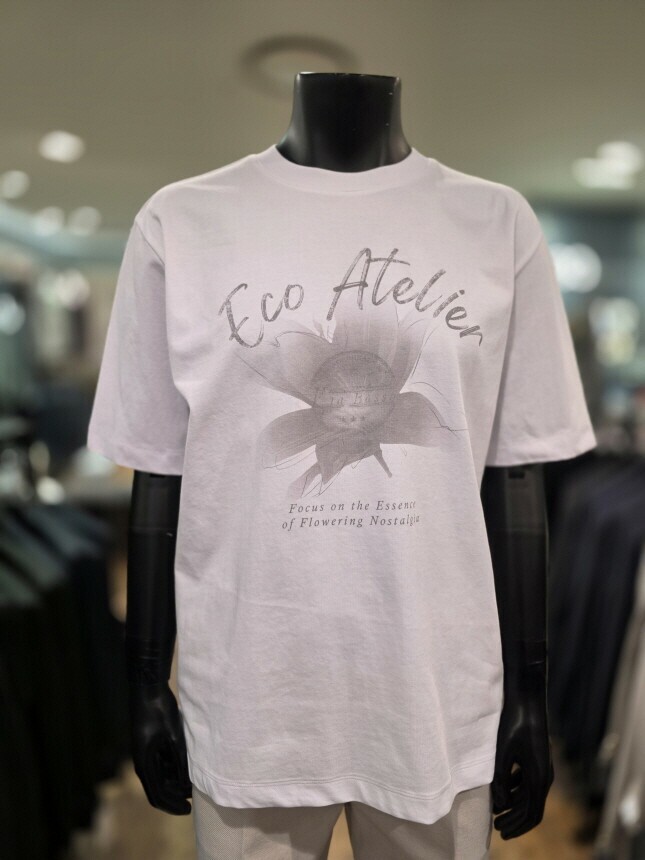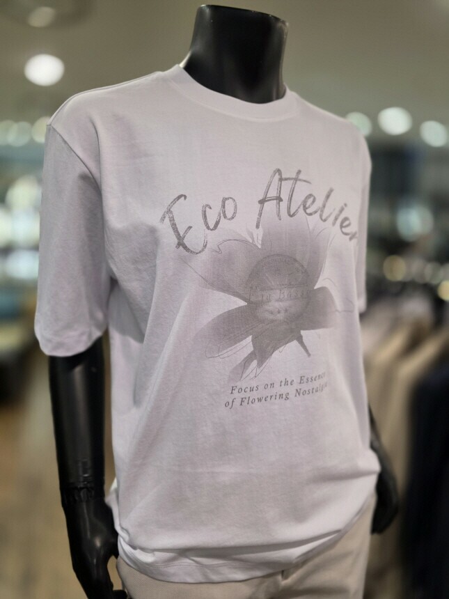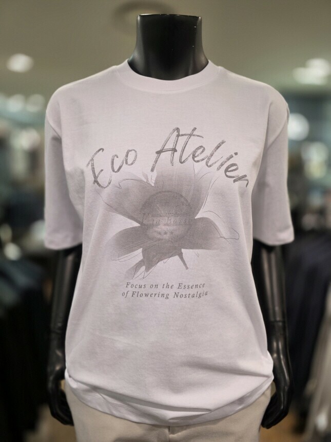 [바쏘옴므] Z2KR16A S/S 화이트 프린팅 세미오버핏 반소매 티셔츠