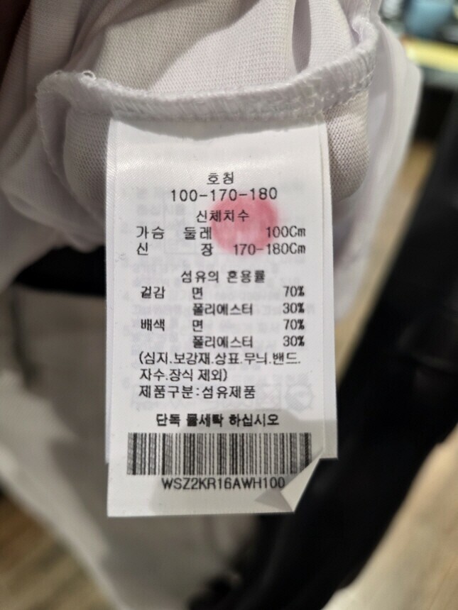 | 1. 제품 소재 (섬유의 조성 또는 혼용률을 백분율로 표시, 기능성인 경우 성적서 또는 허가서) | 겉감 : 면 70% , 폴리에스터 30% 배색 : 면 70% , 폴리에스터 30% ( |