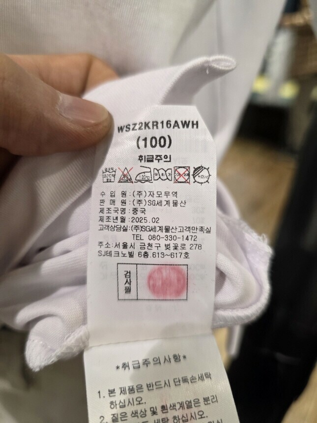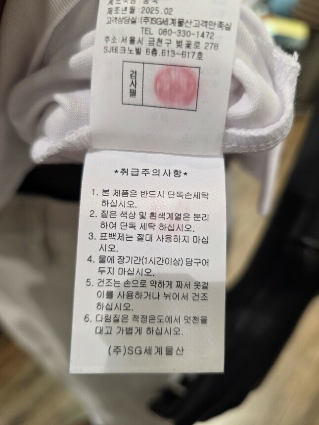 | 6. 세탁방법 및 취급시 주의사항 | 단독 물세탁 |