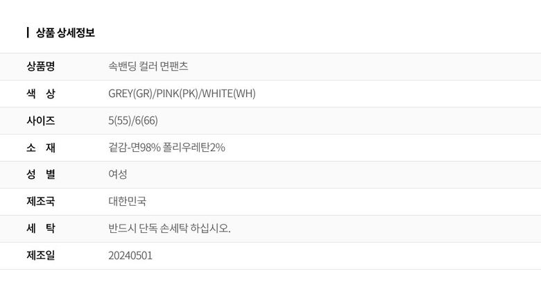 | 2. 색상 | 색상:GREY(GR)/PINK(PK)/WHITE(WH) |