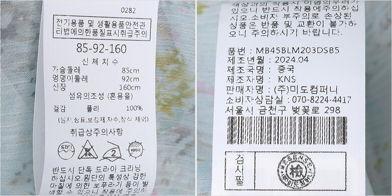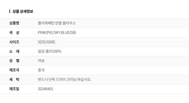 | 6. 세탁방법 및 취급시 주의사항 | 상세페이지 참조 |