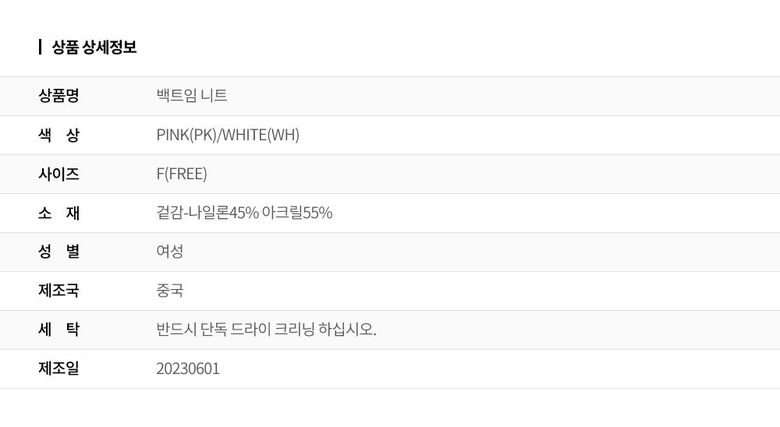 | 2. 색상 | 색상:PINK(PK)/WHITE(WH) |