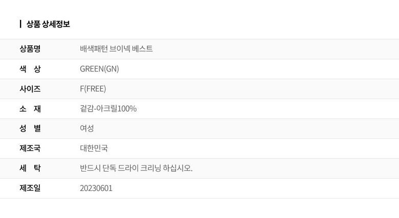 | 6. 세탁방법 및 취급시 주의사항 | 상세페이지 참조 |