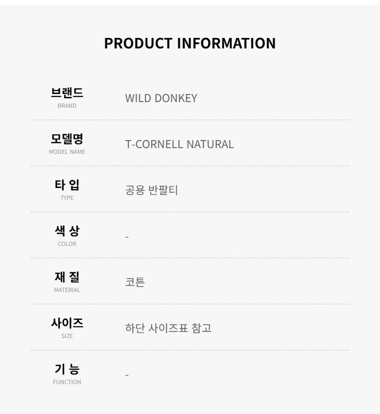 와일드동키 T-CORNELL NATURAL 코넬 공용 반팔티