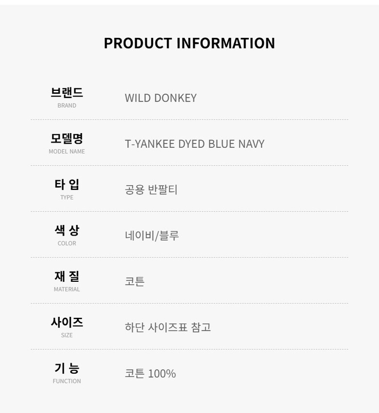 와일드동키 반팔 T-YANKEE DYED BLUE NAVY 그래픽 프린팅 남성반팔티 여성반팔티 당일발송