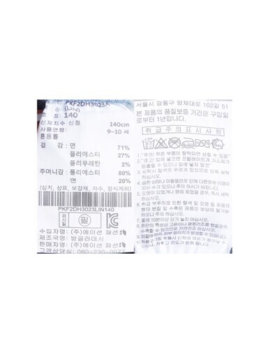 | 1. 제품 소재 (섬유의 조성 또는 혼용률을 백분율로 표시, 기능성인 경우 성적서 또는 허가서) | 상품상세참조 |