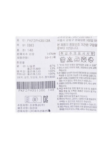 | 1. 제품 소재 (섬유의 조성 또는 혼용률을 백분율로 표시, 기능성인 경우 성적서 또는 허가서) | 상품상세참조 |