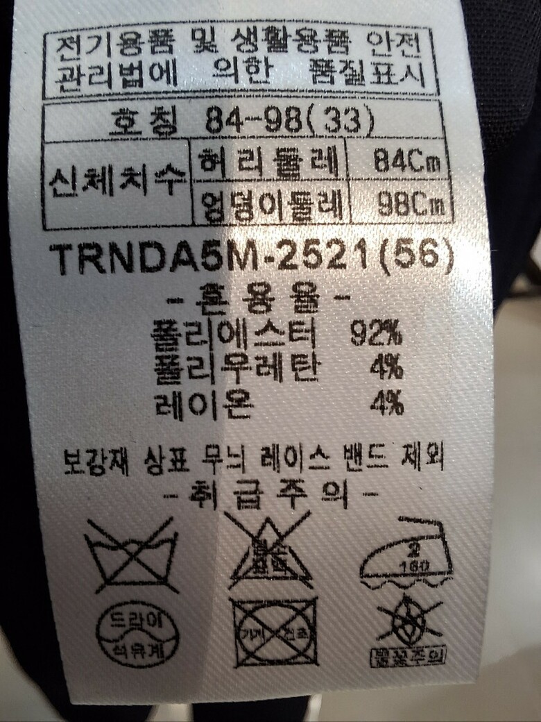 | 1. 제품 소재 (섬유의 조성 또는 혼용률을 백분율로 표시, 기능성인 경우 성적서 또는 허가서) | 폴리에스테르 92%, 폴리우레탄 4%, 레이온 4% |