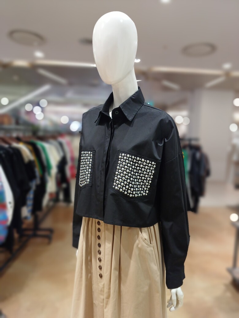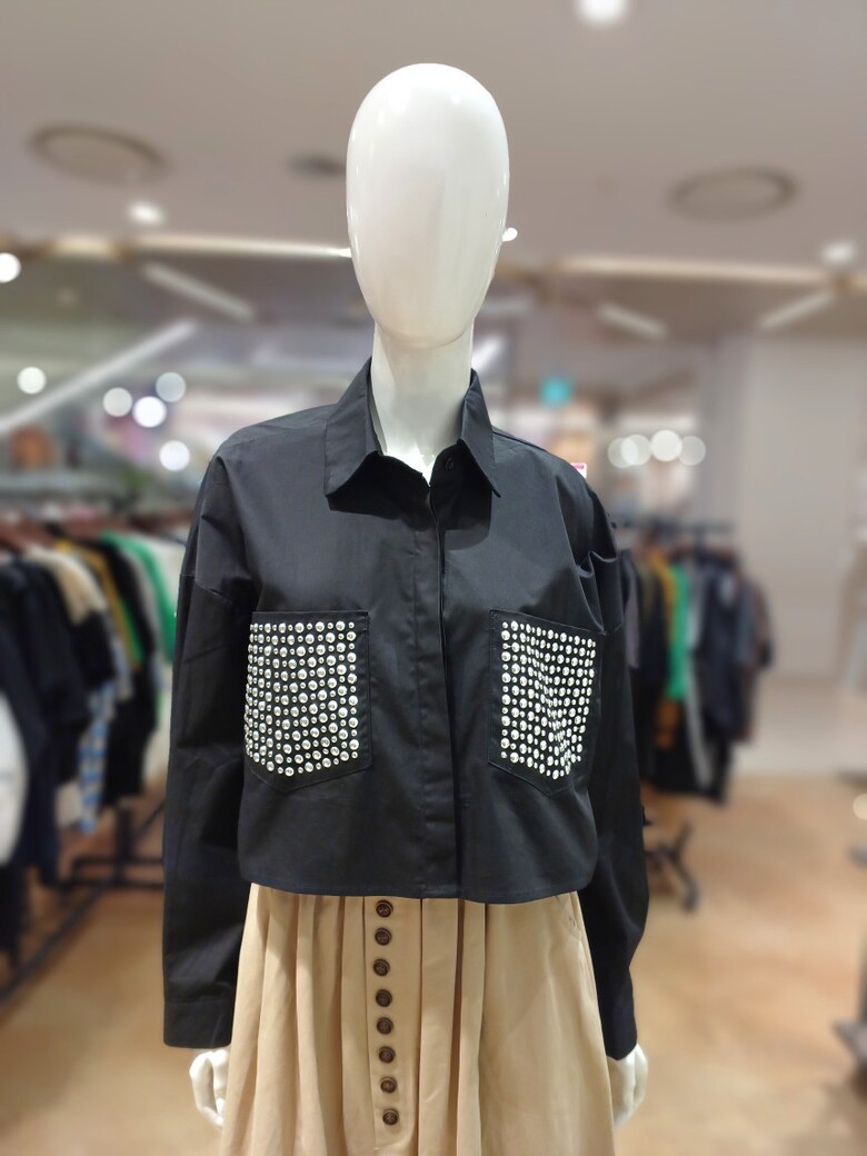 르니앤맥코이 실버 포켓 포인트 크롭 카라블라우스MM04BL502