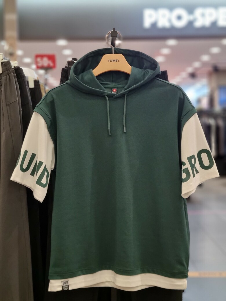 레이어드 후드 반팔 티셔츠 입니다