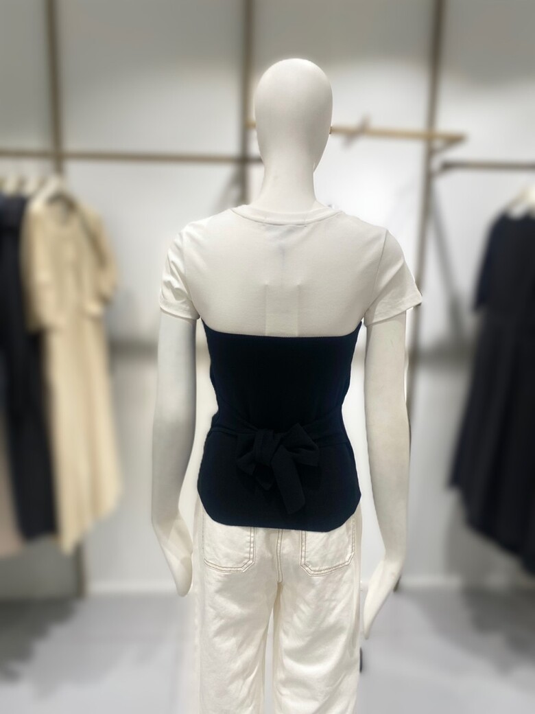 허리리본 배색 라운드 티셔츠 (NJW5ME486)