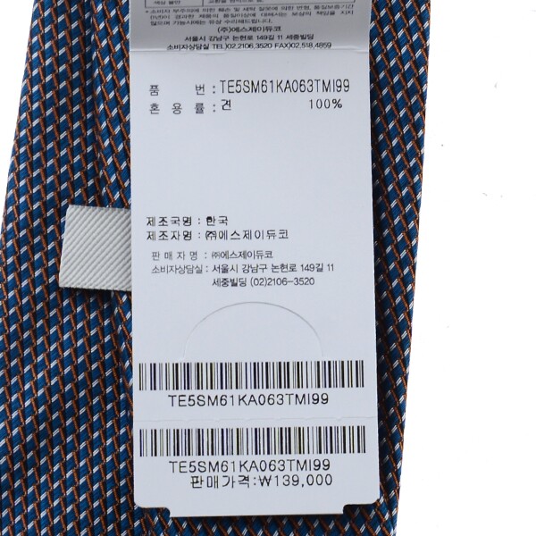 | 6. 취급시 주의사항 | -넥타이 보관시 매듭을 풀고 보관해 주십시요.-구김이 가지 않도록 길게 걸어두시는것이 좋습니다.-니트 타이의 경우, 장기간 걸어두시면 늘어날 수 있한국습니다. -둥글게 말아서 보관해 주십시요. - 접어서 보관하실 경우, 모양이 망가질 수 있으니 피해 주십시요.-물세탁시 제품의 광택 및 색상이 감소될 우려가 있습니다. -세탁시 사용시 모양이 망가질 수 있습니다 |
