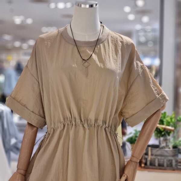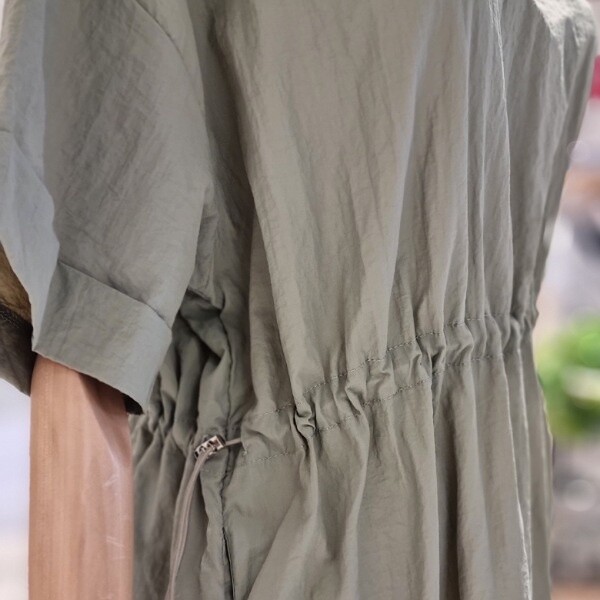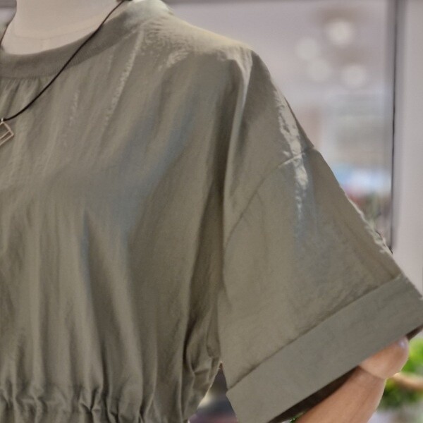 라운드넥 박시하게 착용가능허리스트링으로 슬림함 연출 넥선 시보리처리 바스락 소재의 시원함