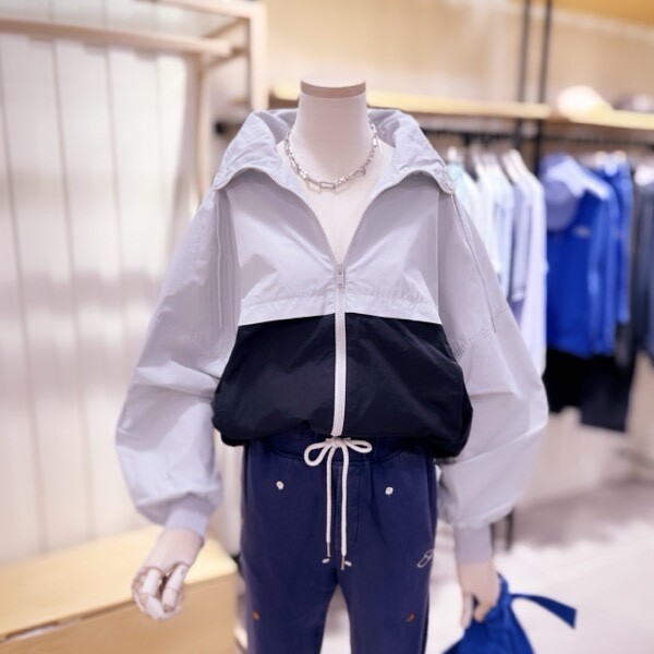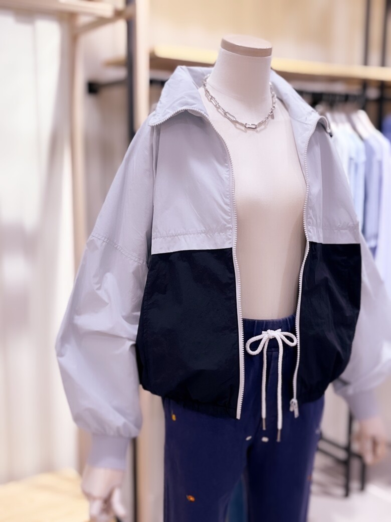 컬러배색이 예쁜 홑겹 하이넥 점퍼입니다.
