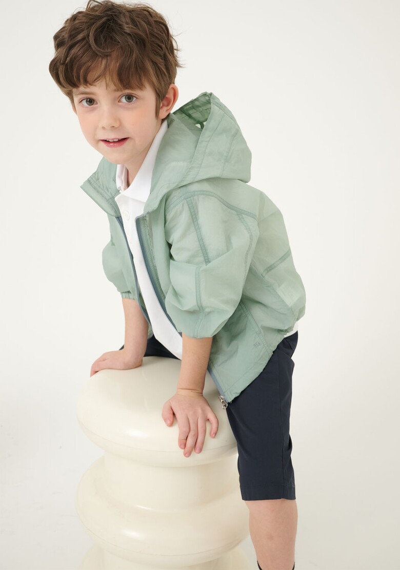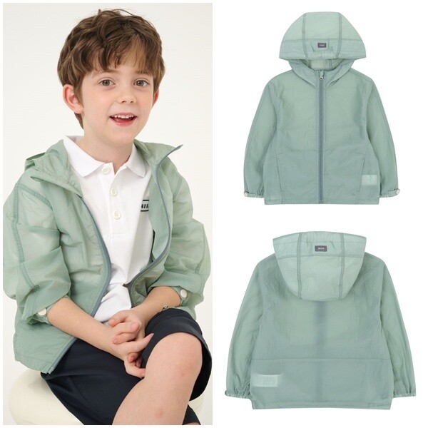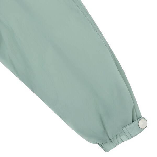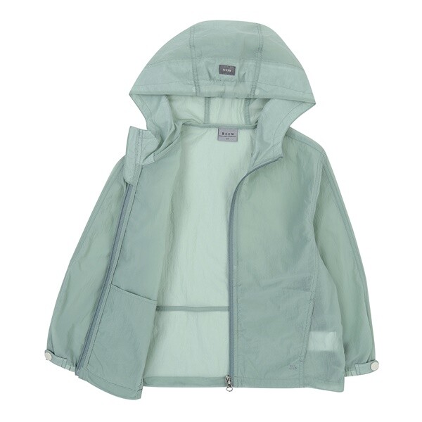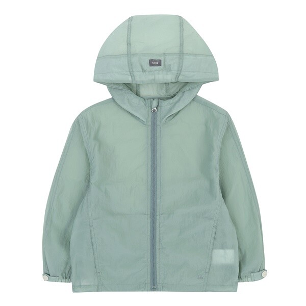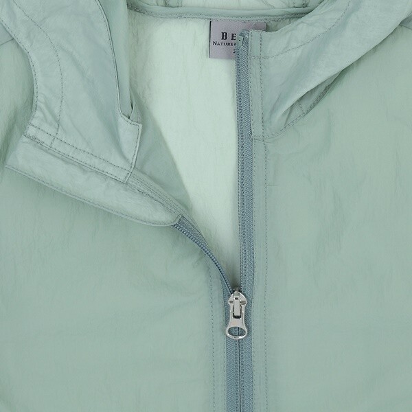 소프트한 파스텔 카키 컬러의 후드 홑겹 점퍼입니다.