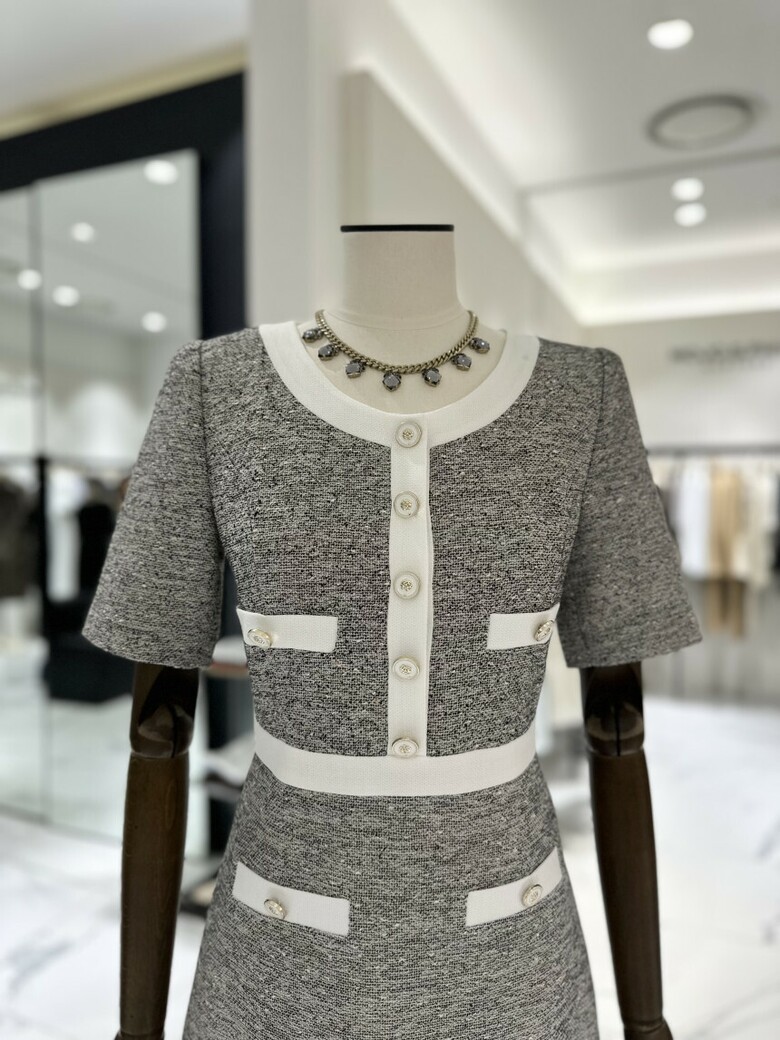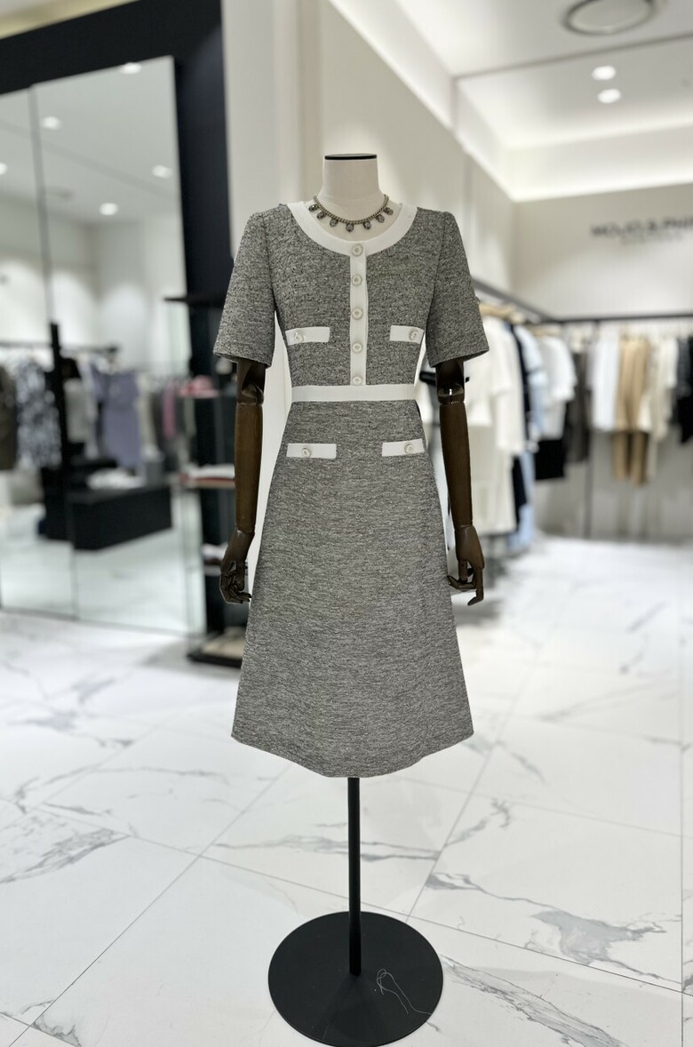 모조에스핀 배색 메탈 트위드 원피스 S252MSE015