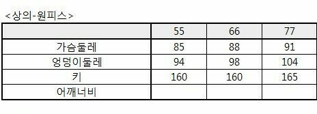 소고(SOGO) 의류 사이즈 기준표