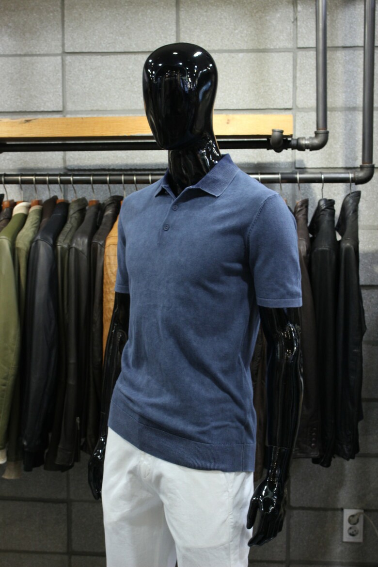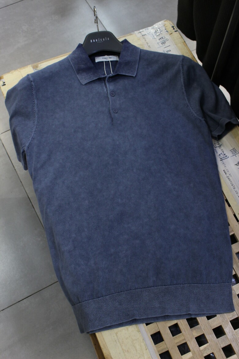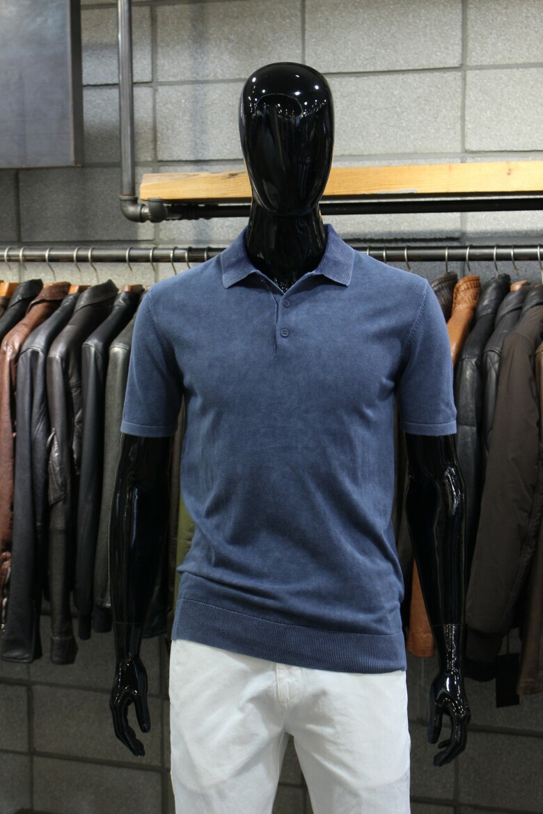 빈티지워시드블루 슬림핏 반팔면니트카라티 m-qnit07bl