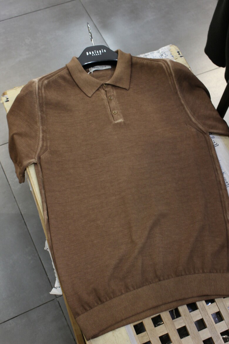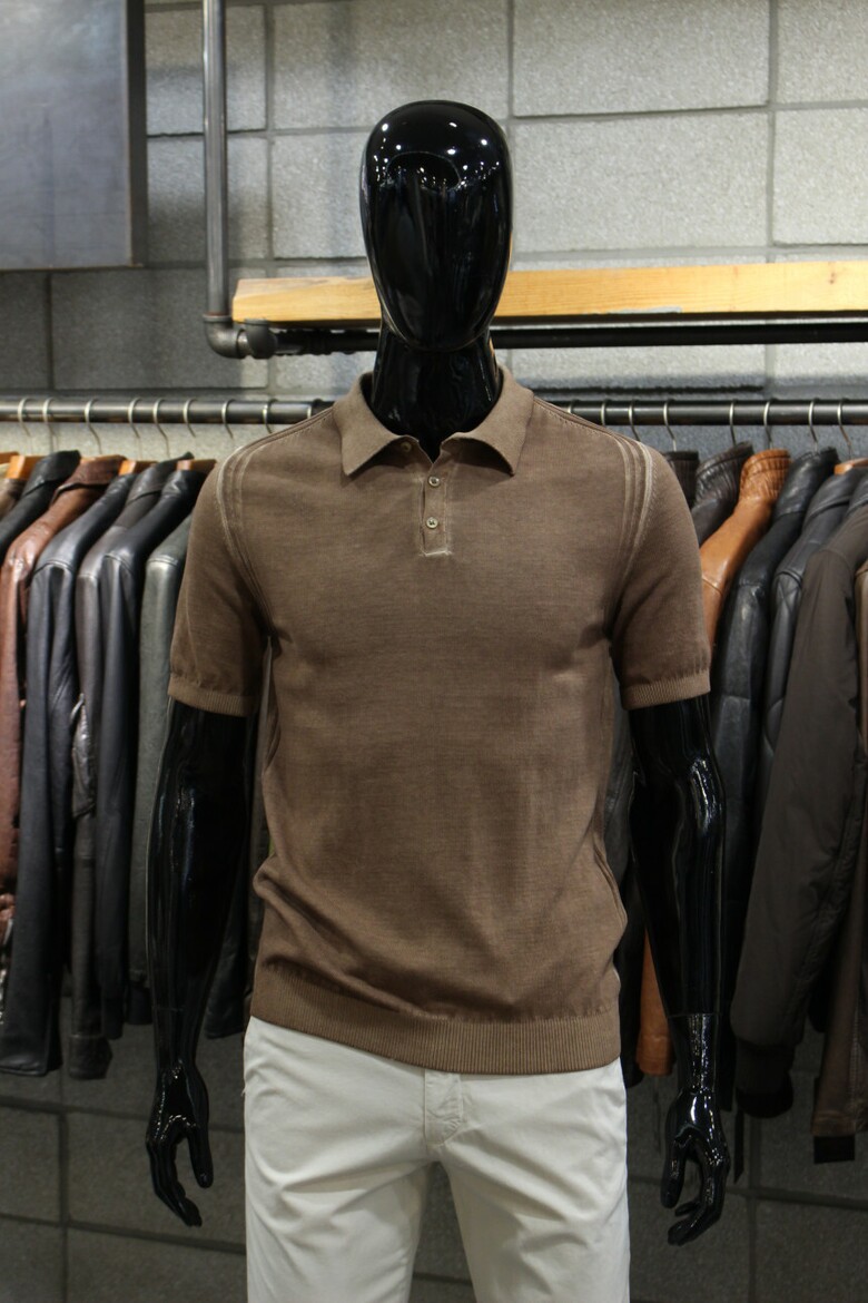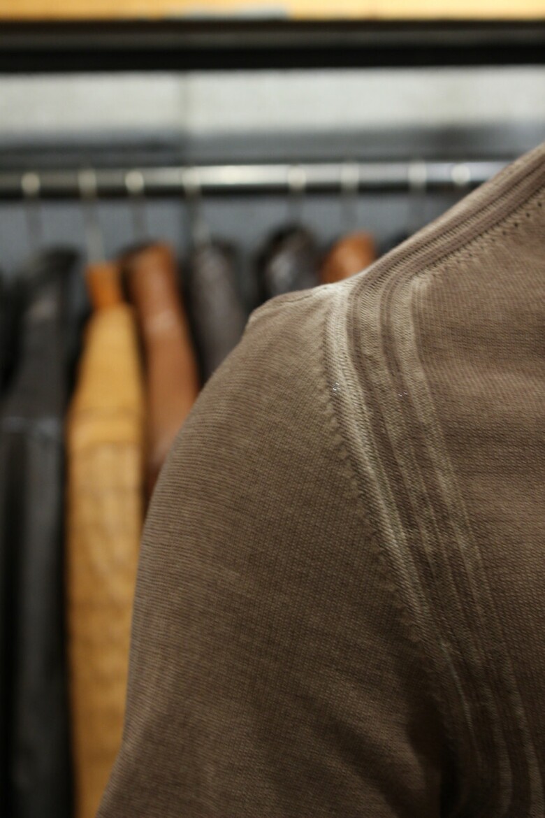 이태리직수입 가먼트다잉샌드브라운 슬림핏 빈티지면니트카라티 f-qnit03sa